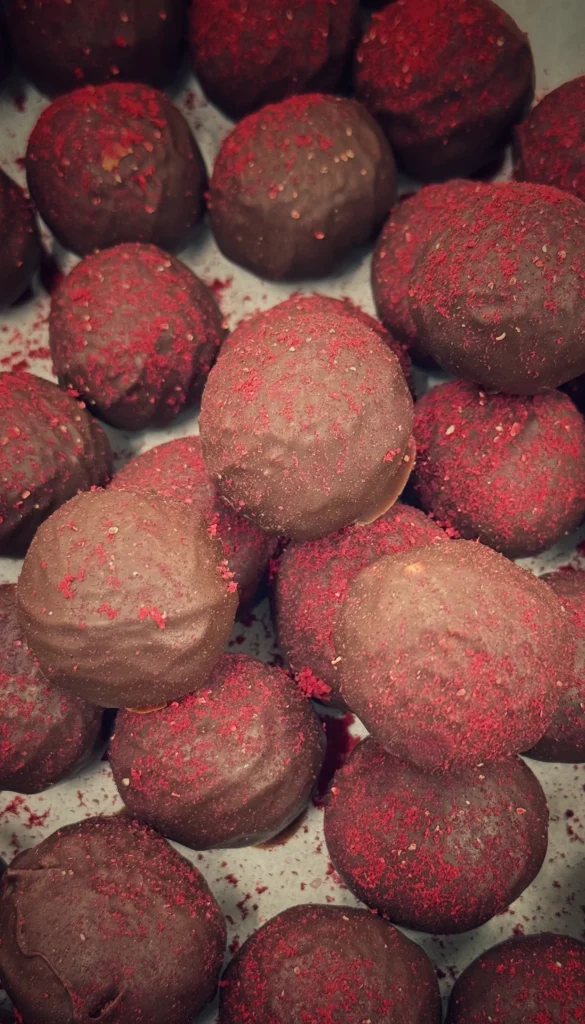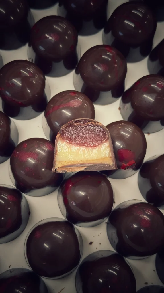 Ryškus avietės ir tamsaus šokolado kąsnis.