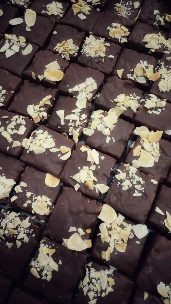 Sviestinė druskos karamelė su traškiais migdolais.