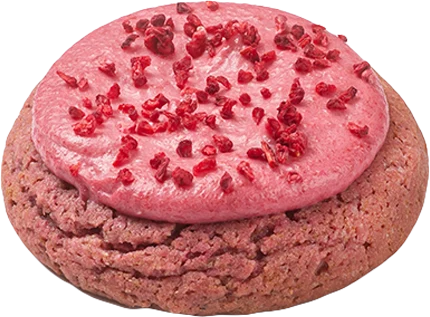 Sausainis su puriu aviečių kremu, pabarstytas džiovintų aviečių trupiniais.