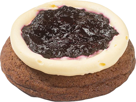 Sausainis su mėlynių džemu ir puriu baltu kremu
