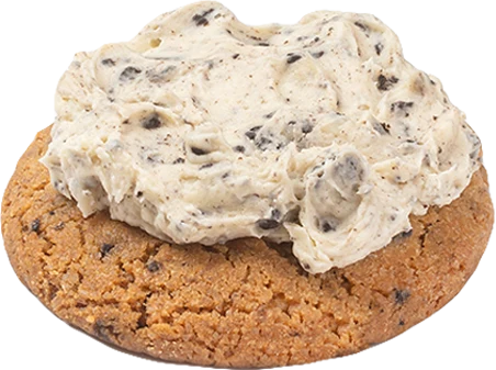 Klasikinis sausainis su šokolado gabaliukais ir kremu su Oreo trupiniais ant viršaus.