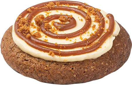 Sausainis su puriu baltu kremu, dosniu kiekiu karamelės ir pumpkin spice prieskoniais