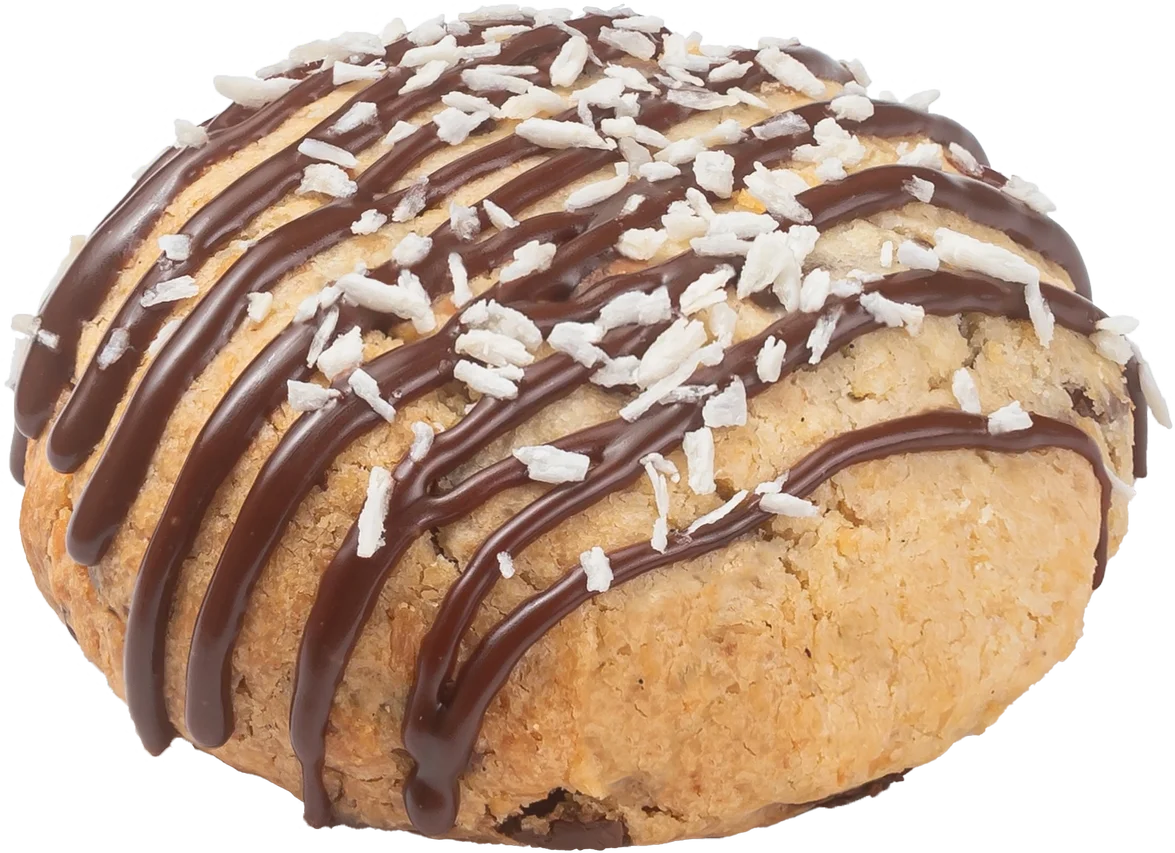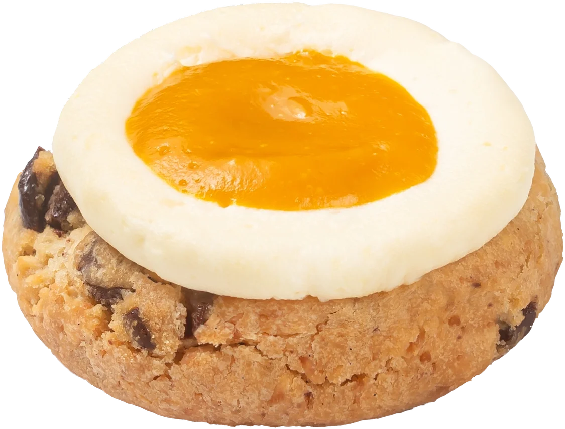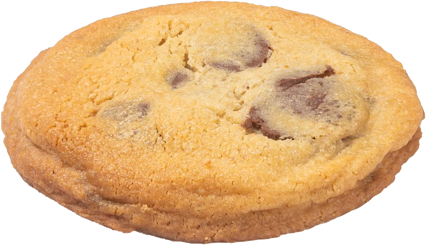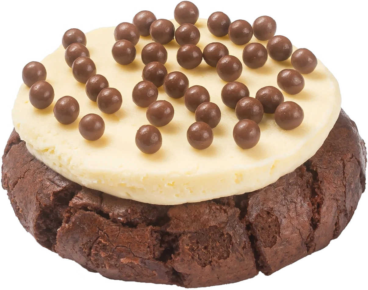 Klasikinis sausainis su šokolado gabaliukais ir kremu su Oreo trupiniais ant viršaus.