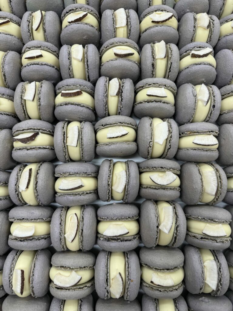 Macarons su kokosų kremu, užpildyti Dulce de leche kremu